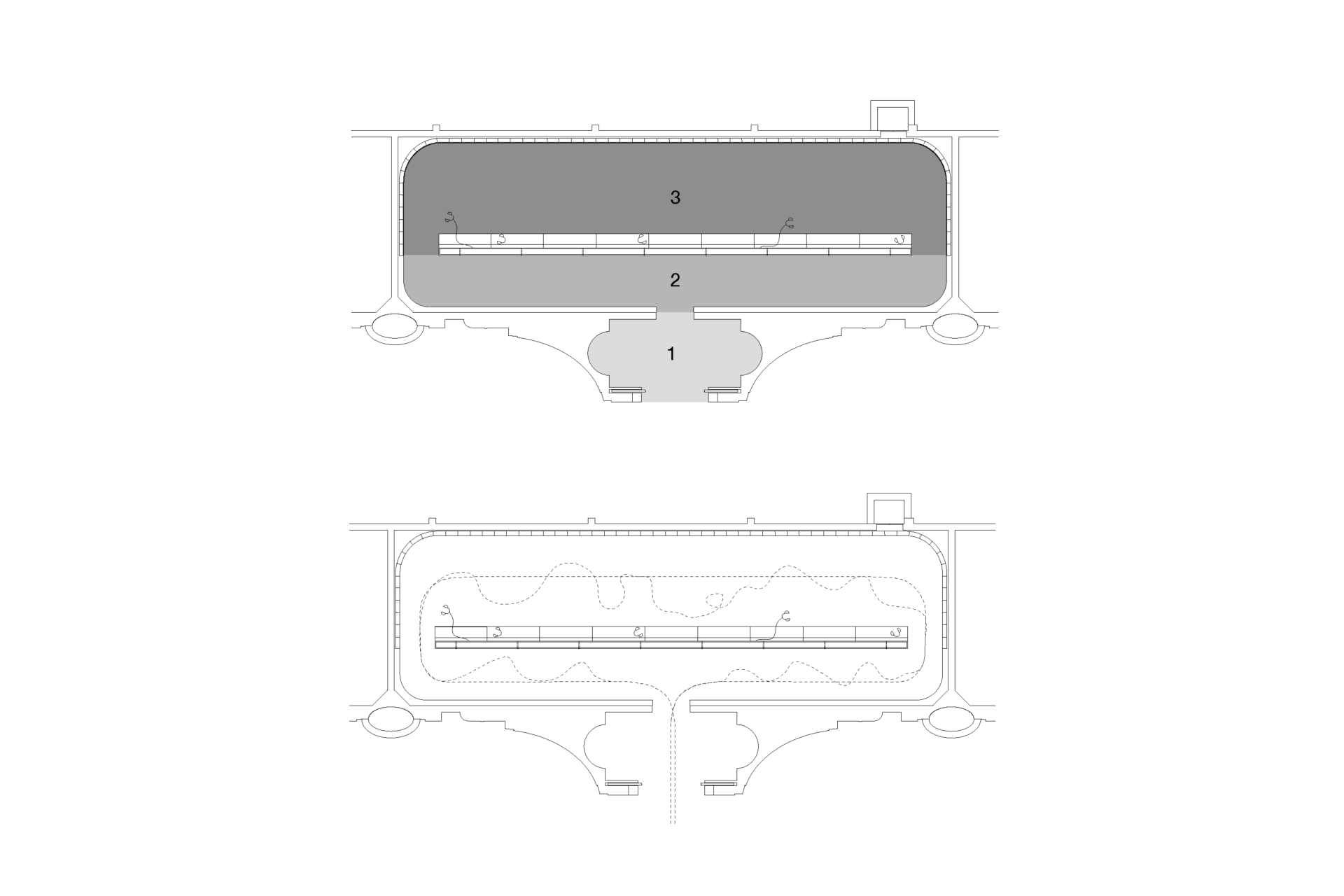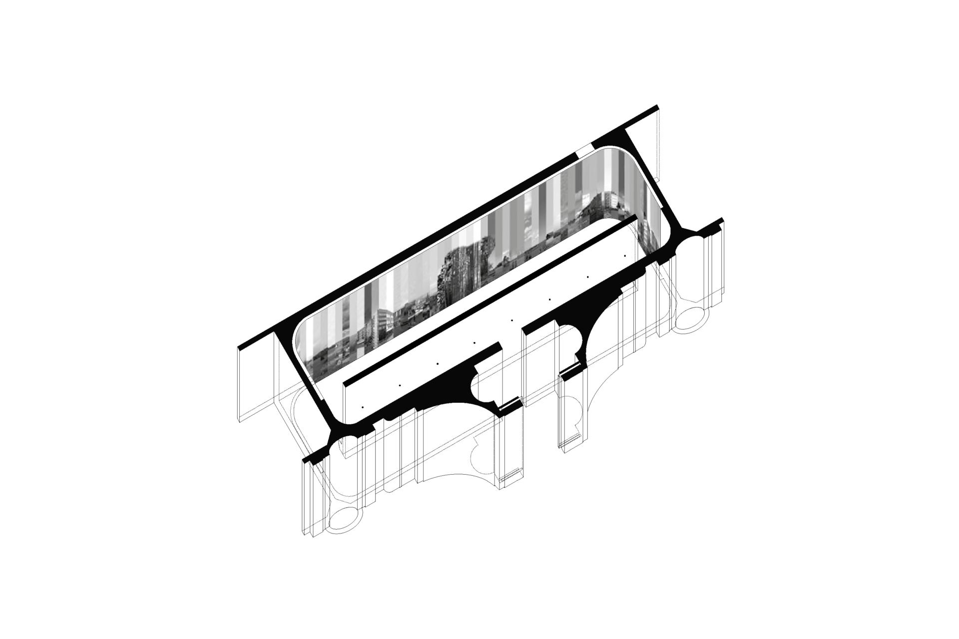 Each frame from the section is later on assembled into one single image – a collage around 25m long – which becomes the centre piece of the exhibition, determining its form and realisation within the Polish pavilion.