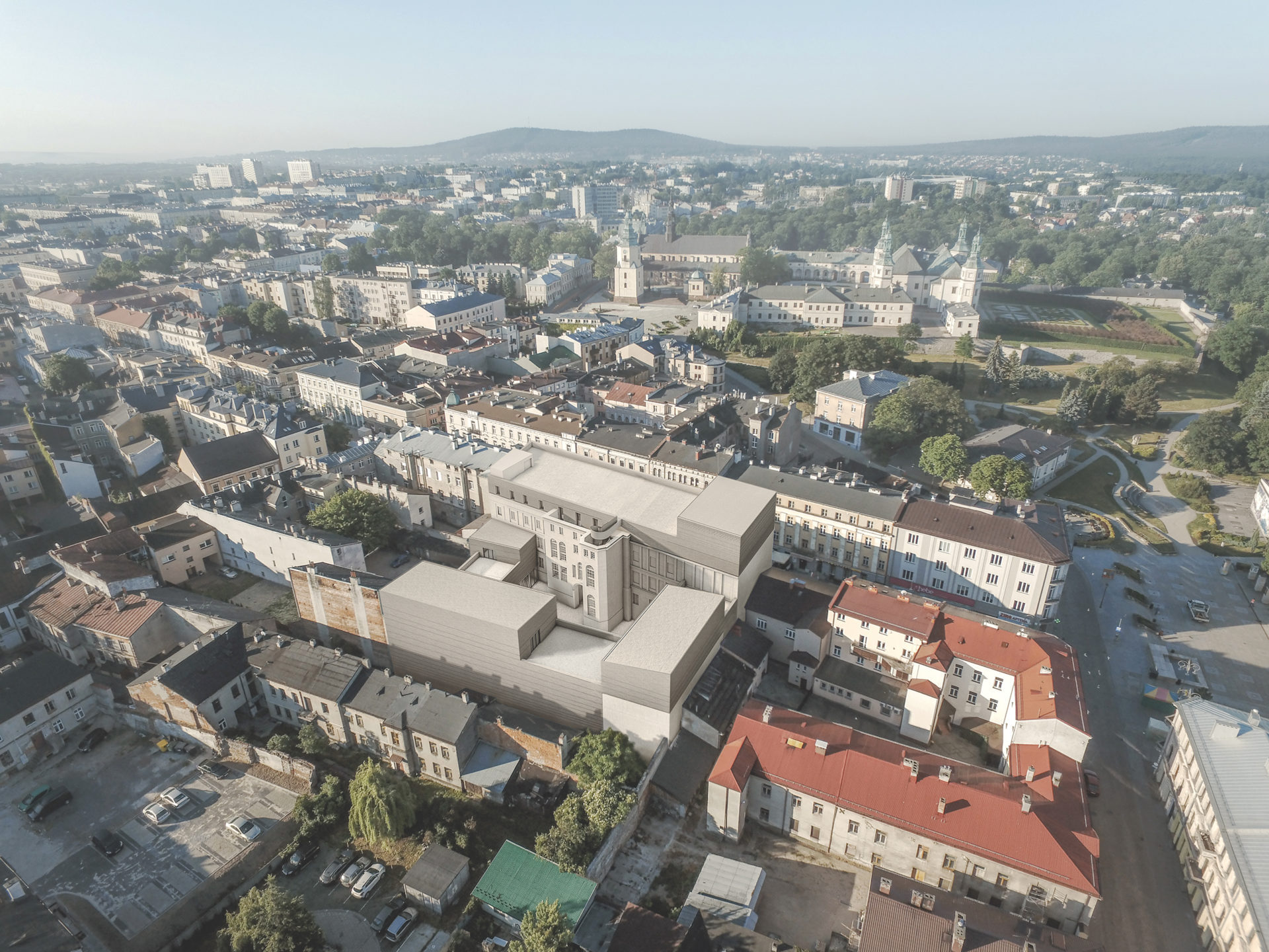 Das denkmalgeschützte Theater, welches samt seinen Mantelnutzungen sowohl das repräsentative Vorderhaus als auch zwei Hinterhäuser des sich in der Innenstadt von Kielce befindenden Grundstücks einnimmt, soll grundlegend modernisiert und ausgebaut werden.
