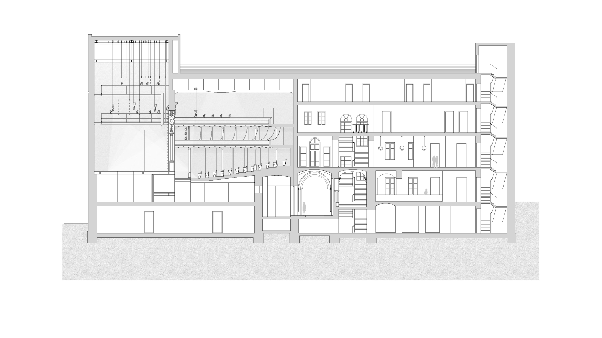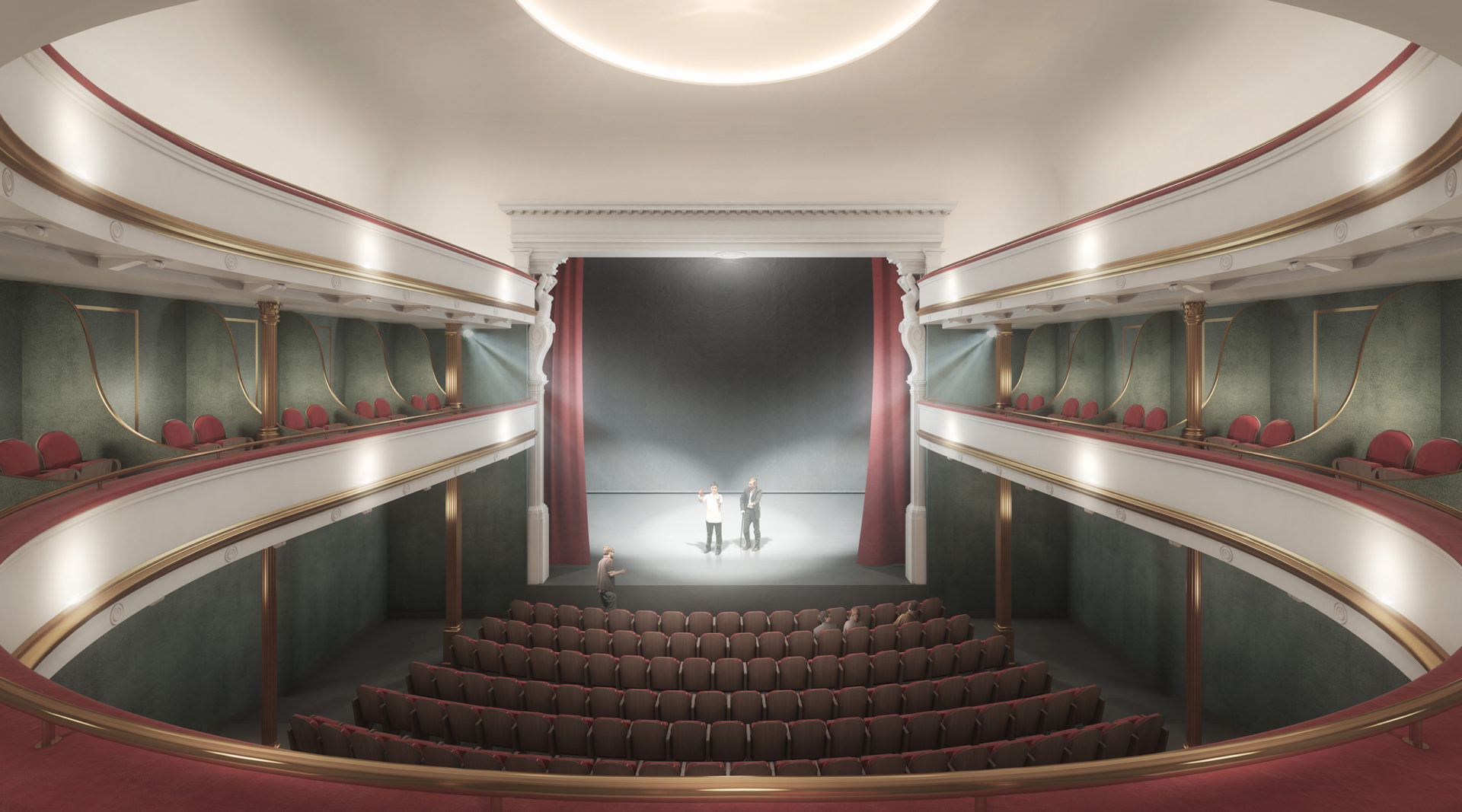 Der historisch wertvollen Grosse Saal wird einigen zurückhaltenden Eingriffen unterzogen, ohne dass er seinen einzigartigen Charakter verliert. Gleichzeitig erhält das Theater einen zeitgenössischen Kleinen Saal, welcher auch aufgrund seiner unmittelbaren Nähe zum Hof vielseitig einsetzbar ist.